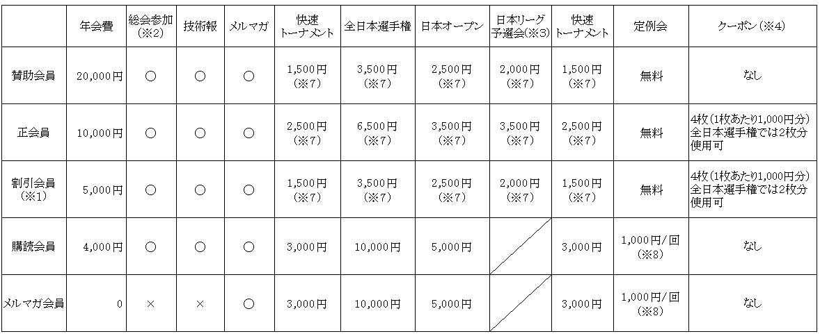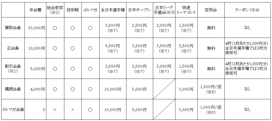 ※4 1枚あたり1,000円分のクーポンが4枚、年会費に含まれているもので、各種大会および定例会で使用すること